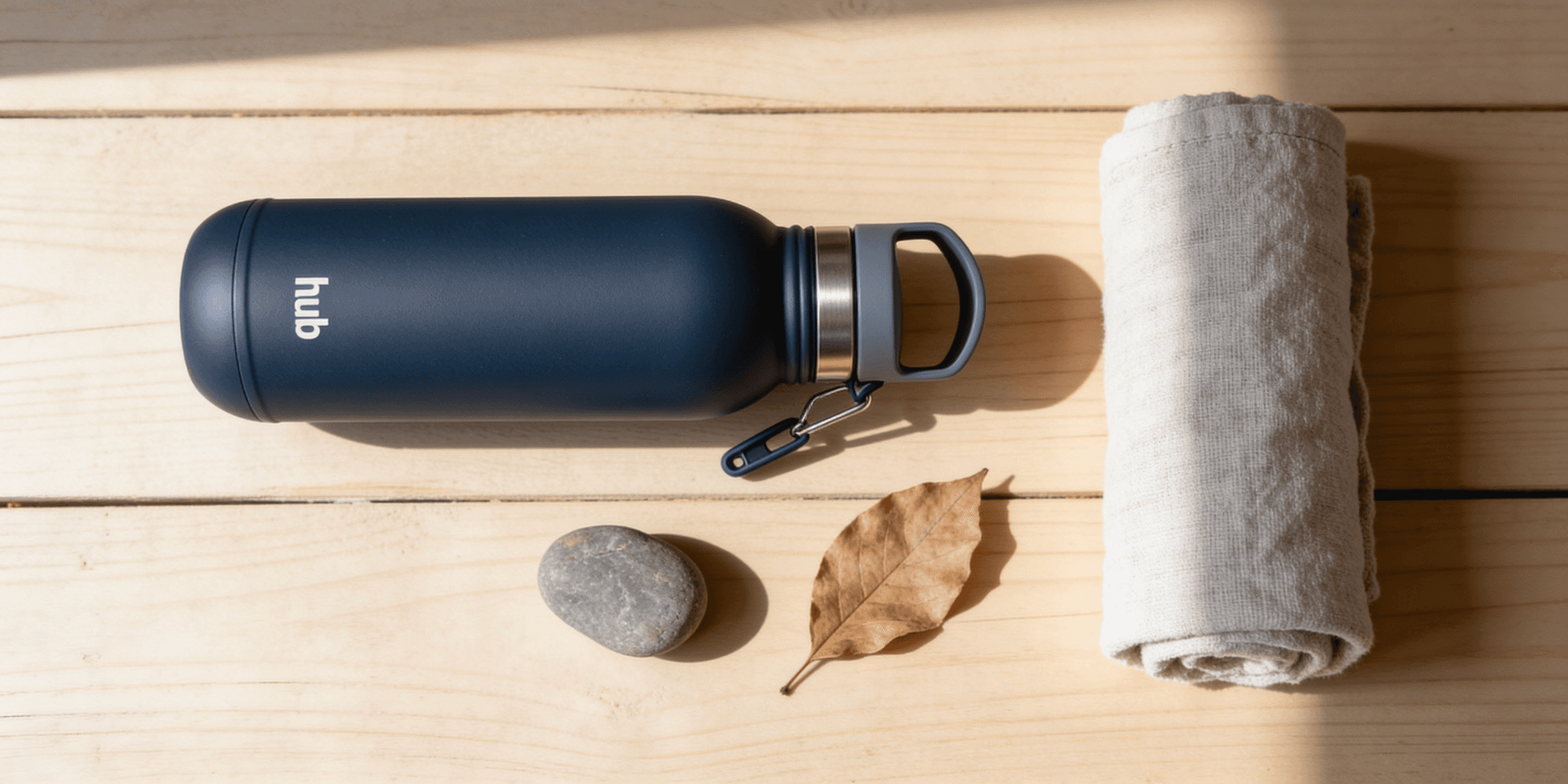 The final system is a sophisticated fusion of form and function. By utilizing a rugged matte navy finish, contrasted with technical grey elements, the design immediately communicates rugged reliability and premium quality. The minimalist 'Hub' logo, rendered simply in contrasting white, serves as a point of confidence and connection. The resulting product is not just a utility, but a tactile statement piece that successfully positions Hub Hydration in the competitive premium wellness market.